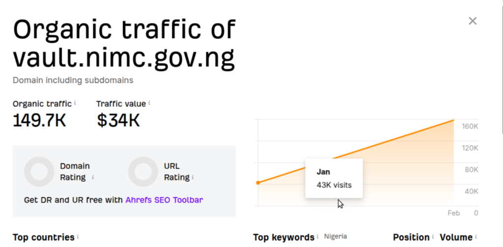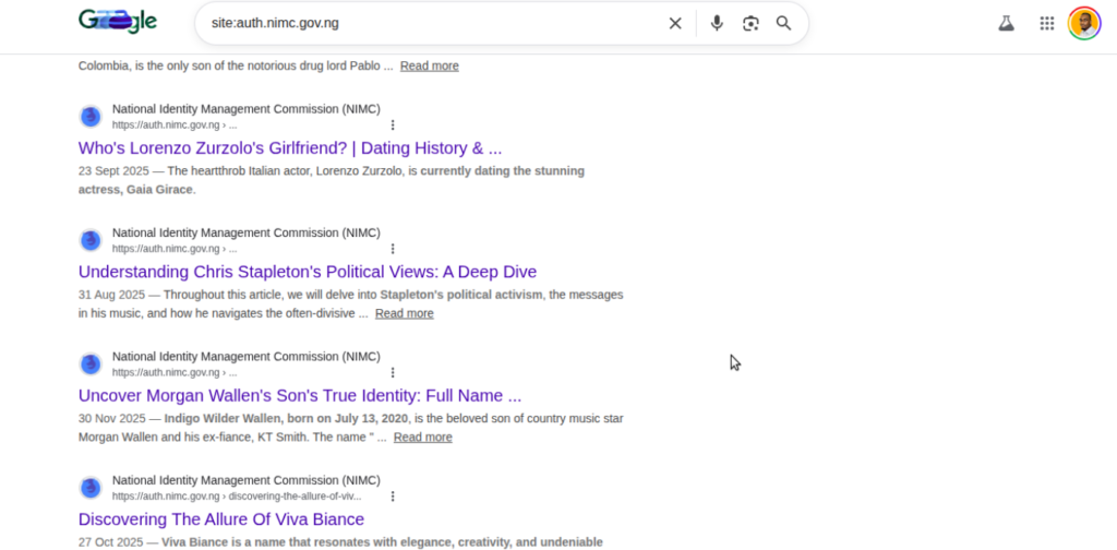 One of the most heavily abused subdomains, vault.nimc.gov.ng, accumulated substantial search engine presence before remediation actions began.